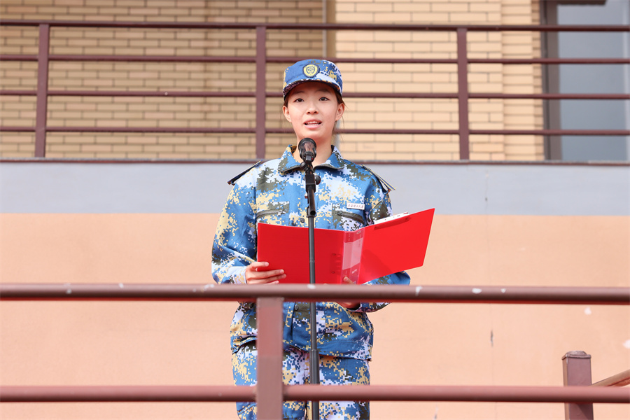 承训教官代表随后发言,他表示,武警晋中支队全体承训官兵将秉持 “文明之师、威武之师” 的优良作风,严格按照军训大纲要求,科学施训、精准施教,既传军事技能,更育爱国情怀,助力新生在军训中练就过硬本领、塑造坚毅品格,与学校共同完成好此次军训任务。